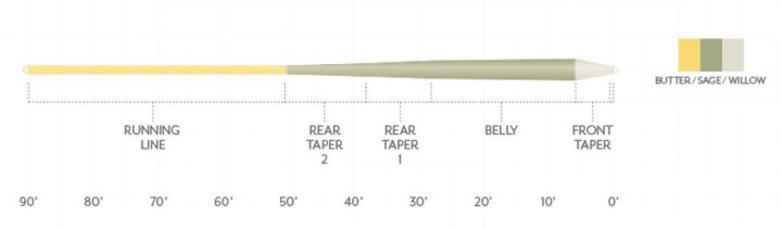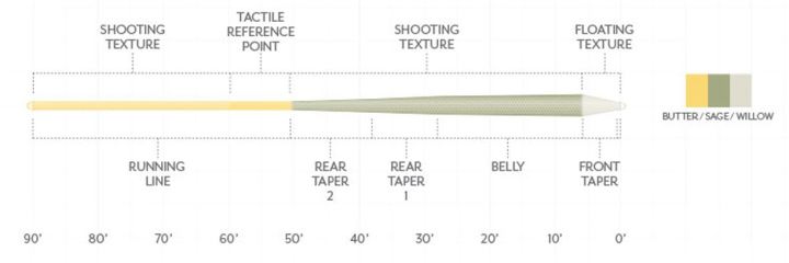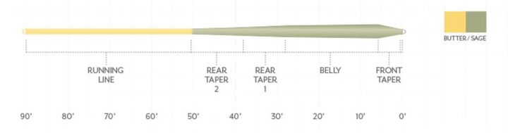 ティムコ特注渓流用ラインに、最新のライン製造技術ドライティップテクノロジー(DTT)を搭載。日本の渓流での実釣域である近距離から中距離で扱いやすくなるように、通常のラインより若干フロント側が重く設計されています。