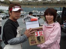 | 参加された皆さん、ありがとうございました。 当日は気温が低く雨も振るあいにくの天気でしたが、予想以上にイカの反応は良かったようでウェイインは過去最高の43人。 ベスト10内の重量は大差が無く参加された皆さんの実力が拮抗してきているのだと思います。 大会後のヤマラッピ&たまちゃんのセミナーは実演を交えての説明で分かりやすく勉強になったと思います。 雨の中お疲れ様でした。 |