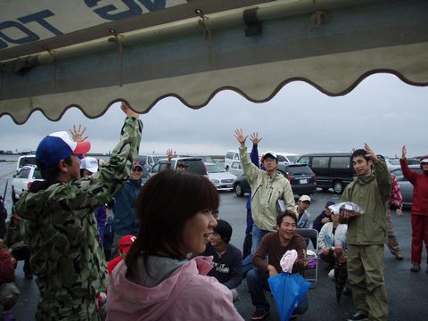 | ジャンケン大会 ボウズジャンケン! King of ボウズ ※ボウズジャンケンとは・・・ 大会で1パイもウェイイン出来なかった方のみで行われるジャンケン。 ジャンケンで負けた者が残るという正に”負けの中の負け” 勝者(敗者?)にはモンスターばっかり狙ってるからボウズになるんだ? という事でモンコリが贈られました(笑) |