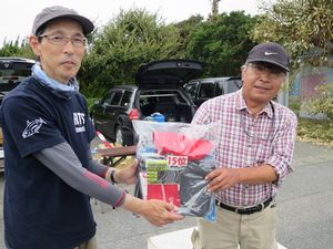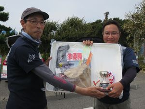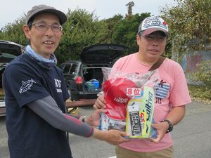 | 当日は晴天で風も弱くエギング日和でした。 今年の前年より少し早い時期に開催したのでキーパーサイズは前年より2cmダウン! 前日の強風の影響からか潮が濁っており皆さん苦戦していました。 優勝の平野さんは加藤さんの3連覇を阻止して見事優勝! 一緒に参加された2名も入賞しておりポイント選択が良かったようです。 惜しくも2位で3連覇を逃した加藤さんは渋い状況で6パイ釣ってきており流石でした! 恒例のジャンケン大会では、今年もグー多めと宣言しておきながら最初にチョキを出して怒られましたが^^;; その後はグージャンケンで盛り上がりました! 参加された皆さん、お疲れ様でした。 |